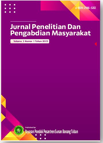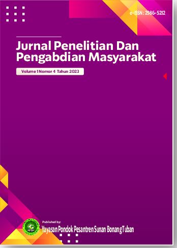 Alhamdulillah, Jurnal Penelitian dan Pengabdian Masyarakat has published Volume 1 Number 3 August 2023. In this edition, 12 articles have been published from 34 authors and 13 institutions. The thirteen institutions are Institut Pesantren Sunan Drajat Lamongan, SMP Mamba’ul Ihsan Gresik, Universitas Singaperbangsa Karawang, Universitas IPWIJA, Institut Teknologi dan Bisnis Adias, IAI Badrus Sholeh, Institut Agama Islam (IAI) Al-Qolam Malang, Universitas Widya Mataram, Universitas PGRI Sumatera Barat, Universitas Harapan Medan, Universitas Medan Area and STAI Al-Azhar Menganti Gresik. We would like to express our thanks to the reviewers who have helped with the assessment process of this article so that the publication process can be carried out well and smoothly
