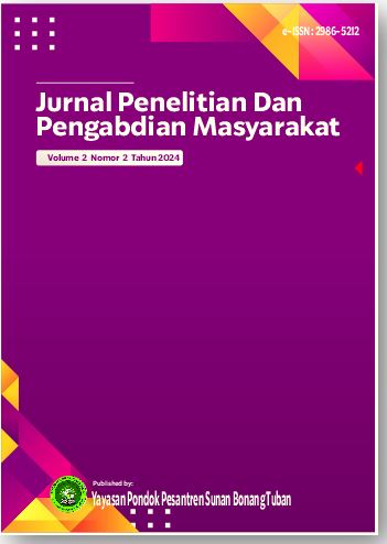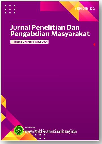 Alhamdulillah, Jurnal Penelitian dan Pengabdian Masyarakat has published Volume 2 Number 1 February 2024. In this edition, 20 articles have been published from 120 authors and 20 institutions. The twenty institutions are STIE Widya Wiwaha , Universitas Pekalongan, Universitas Jenderal Soedirman Purwokerto, Universitas Boyolali, Universitas Victory Sorong,Universitas Dehasen Bengkulu, Institut Ilmu keislaman Annuqayah Guluk Guluk Sumenep, Universitas Teknologi Muhammadiyah Jakarta, Institut Bisnis dan Informartika Kasgoro 1957 , Universitas Pelita Bangsa, Institut Pesantren Sunan Drajat Lamongan, STIE Mahaputra Riau, Sekolah Tinggi Ilmu Ekonomi Semarang, Universitas Binawan, Universitas Nahdlatul Ulama Sunan Giri, Universitas Nahdlatul Ulama Pasuruan, Universitas Pat Petulai, Universitas Ekasakti, Politeknik Bhakti Semesta, and SMP Mambaul Ihsan Gresik . We would like to express our thanks to the reviewers who have helped with the assessment process of this article so that the publication process can be carried out well and smoothly.
